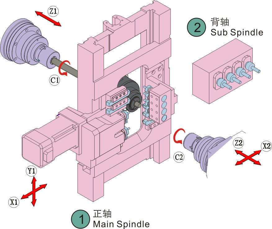 | 移动轴数 | 5轴 | X 1 、Y 1 、Z 1 、X 2 、Z 2 | |